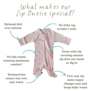 These soft organic All in Ones are the perfect choice for little babies, designed with care and the help of neonatal specialists. The full length zip makes dressing baby simple and gentle, allowing for easy access to any monitors. Baby's fingers and toes are kept cosy with the mitten cuffs and enclosed feet.