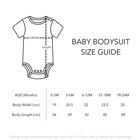 These Bodysuits and T-Shirts are custom made for you and come in a huge range of sizes for bigger infants and children. We can print in any colour you like - our most popular colours are White and Black, and the metallics Gold, Rose Gold and Silver.