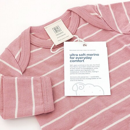Merino wool is ideal for prem clothing as it helps with temperature regulation, keeping your little baby warm in winter and cool in summer. Available in Natural (plain), and Navy, Grey or Pink Stripe.
